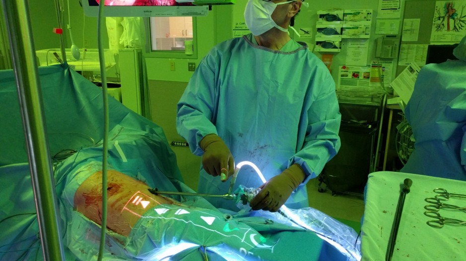 Surgeon James Bond uses NZ Technologies’ Tipso interface during an operation at Surrey Memorial Hospital | Submitted